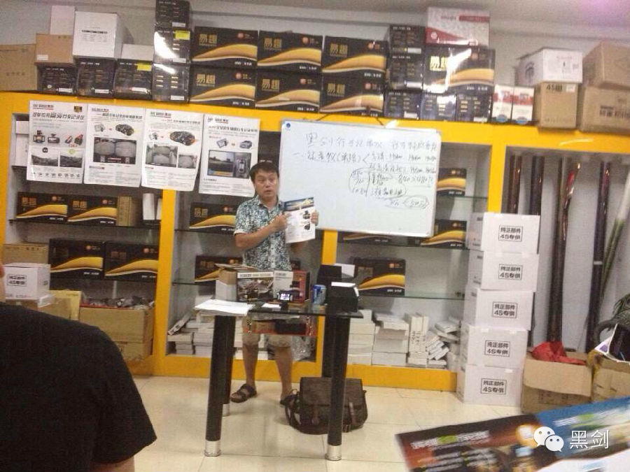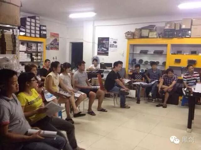 8月20日黑剑电子产品全国运营总监龙志勇先生来到南京车中宝进行产品培训,主要讲述黑剑电子四大系列产品和销售技巧。