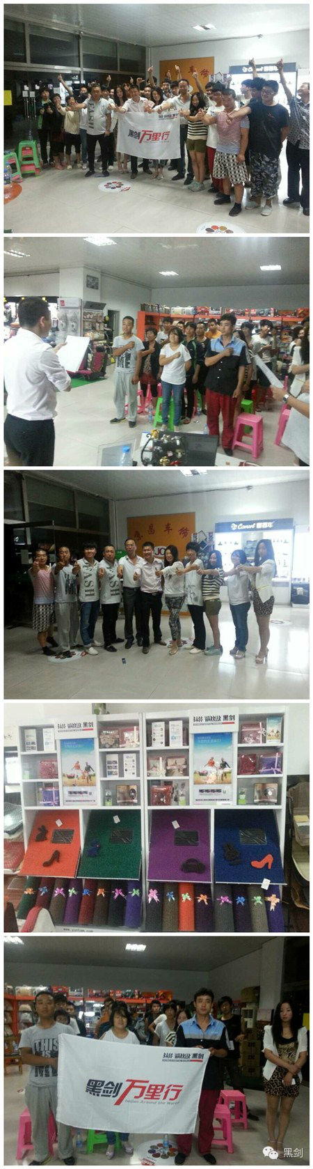 最后一站,小伙伴们来到了同样是位于贵州省的蓝吉骐汽车服务有限责任公司,该公司在贵州地区有四家门店,经营汽车服务行业已经有着很多年的历史,在贵州地区相当有名气。于2014年7月导入黑剑项目,目前四家店半个月销售17套黑剑脚垫,成果相当喜人!