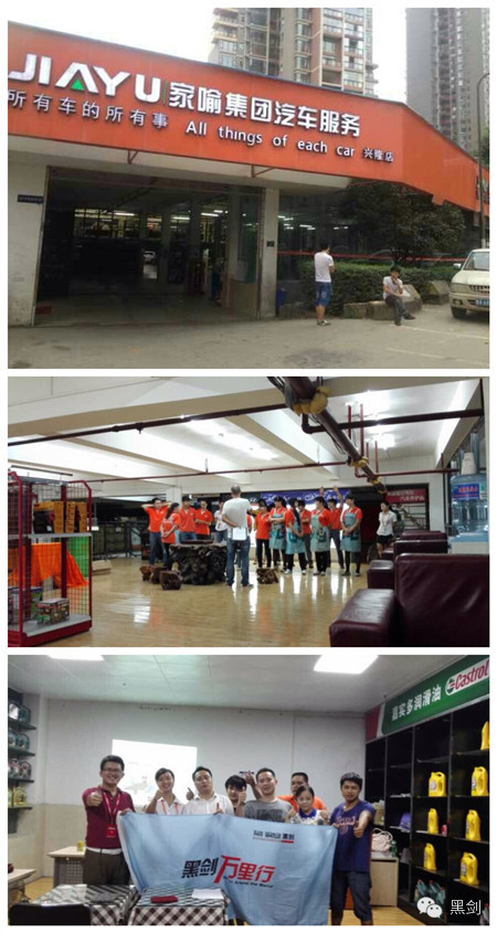第五站,黑剑小伙伴们来到了位于山清水秀,人杰地灵的贵州家喻集团汽车服务,这是一家在贵州地区有着十来家连锁店的汽车服务综合店,名气十分大。于2014年8月导入黑剑脚垫,小编在此祝家喻能越做越好,越做越大!