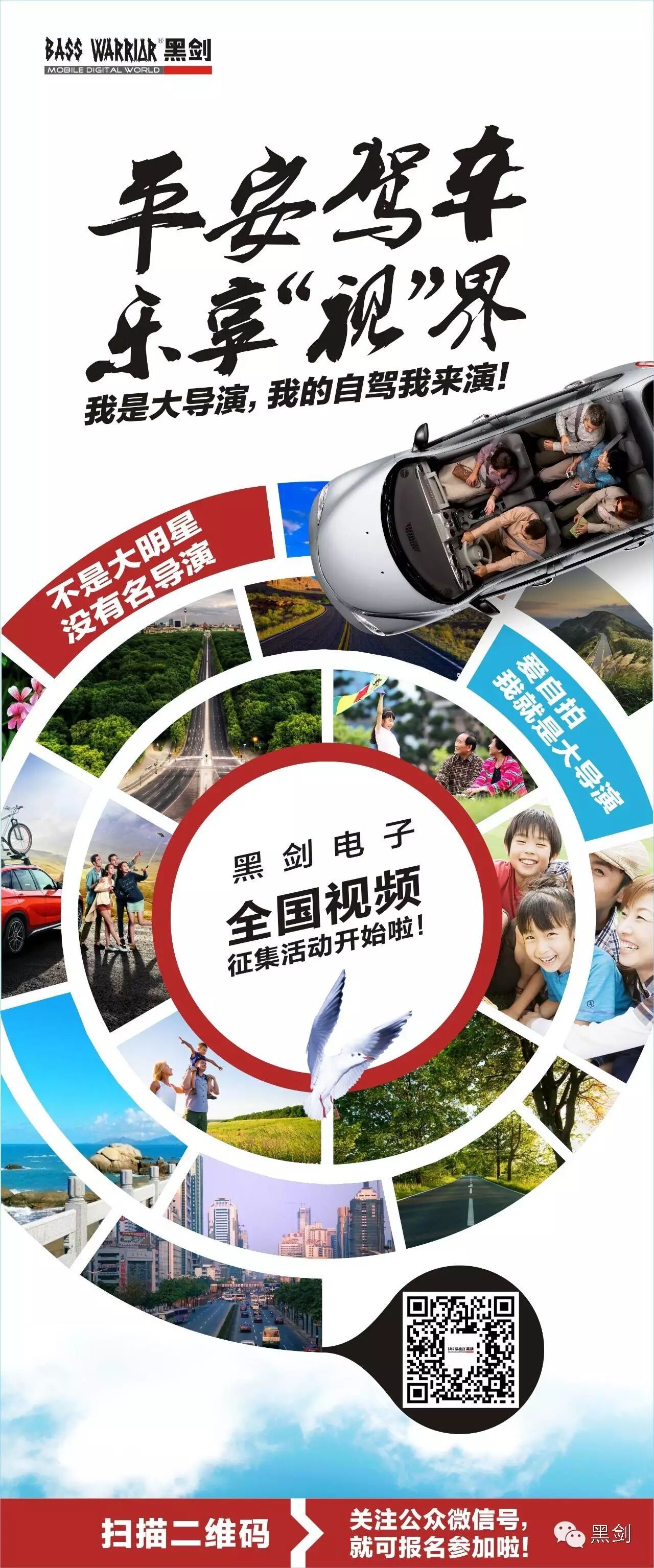 黑剑品牌将举办第一届黑剑记录仪视频有奖征集大赛,如果你是黑剑记录仪用户,如果你的记录仪拍摄到了一些有趣好玩的事件、壮丽的美景,那赶紧来参加比赛吧!